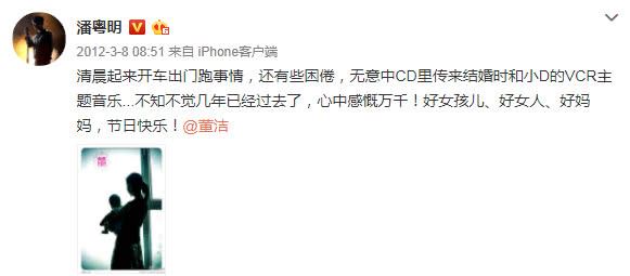 2006年,通过电视剧《红衣坊》,潘粤明和董洁结缘。