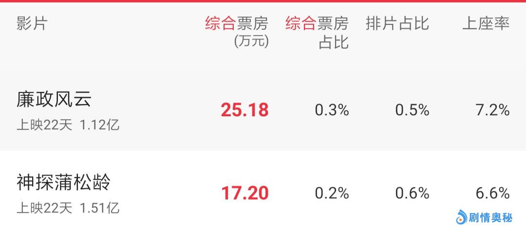 遭遇中外大片联合夹击,诸如《朝花夕誓》、《一吻定情》等新片表现乏力,更别提上映已久的“老片”,成龙主演的《神探蒲松龄》表现糟糕,至今票房仅1.5亿,张家辉新片《廉政风云》更让人失望!