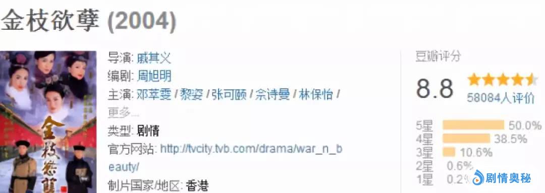 当年在香港播出时,《金枝欲孽》的最高收视达到41点,是香港全年最高收视冠军。在内地播出时,收视率超过了《大长今》!