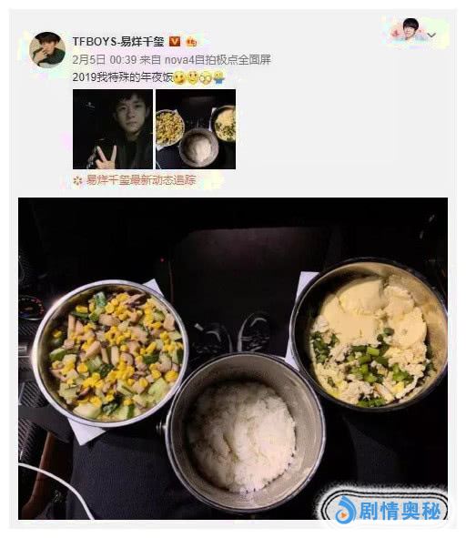 明星有时候挺辛苦的,像前面这几位,不管年夜饭是奢华还是清淡,菜品至少都有好几样,易烊千玺晒出的年夜饭,就比较让“老阿姨们”揪心了,左膝盖处顶一个素三鲜,右膝盖处顶一个水蒸蛋,两腿夹着一碗大白米饭,看着比日常的盒饭都要寡淡。其实,每个地方的年夜饭都有各自的地方特色,你家的是什么样子呢?