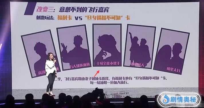 从之前发布会中透露的内容来看,这次的飞行嘉宾是由各位妻子抽卡片而决定的,每一站旅行都会有飞行嘉宾加入,从大屏幕上也能看到各位可能成为嘉宾的明星剪影,一扫过去就发现中间这一位非常的眼熟,一找才发现这就是咱们大佬易烊千玺的剪影呀!这个剪影的关键词还是“十项全能小帮手”,千玺也是完全符合的。
