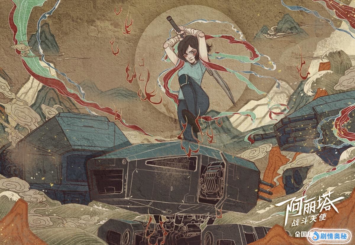 片方最新发布的这组海报以中国风呈现了影片中最精彩的四场动作戏。第一幅海报中阿丽塔初试身手、不畏凶险勇斗恶徒;第二幅海报中阿丽塔纵身而起,机动球赛场以一敌众;第三幅海报中阿丽塔独闯险境、手持利刃力劈华山;第四幅海报中阿丽塔闪转腾挪,面对邪恶绝不姑息。四幅海报的中国风画面让人产生亲切感,又与人物未来感十足的设定形成有趣的对比。细腻笔触下的阿丽塔形神俱备、英气十足,流畅的线条勾勒出她舒展矫捷的身形,影片中阿丽塔克敌制胜的绝招也在海报画面中完美再现,再加上画面上的流云、飞火、长绫,一个中国版“战斗天使”跃然纸上。