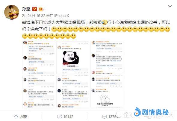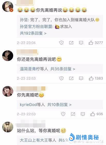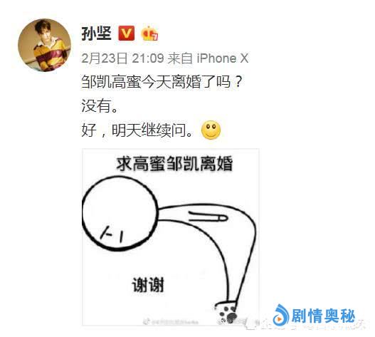 现在邹凯每发一条微博,都会被粉丝攻陷,所以的评论统一都是,先去把婚离了。看见自己的微博变成大型催离婚现场,孙坚也是万般的无奈,有时候还会迎合粉丝,自问自答什么时候离婚。