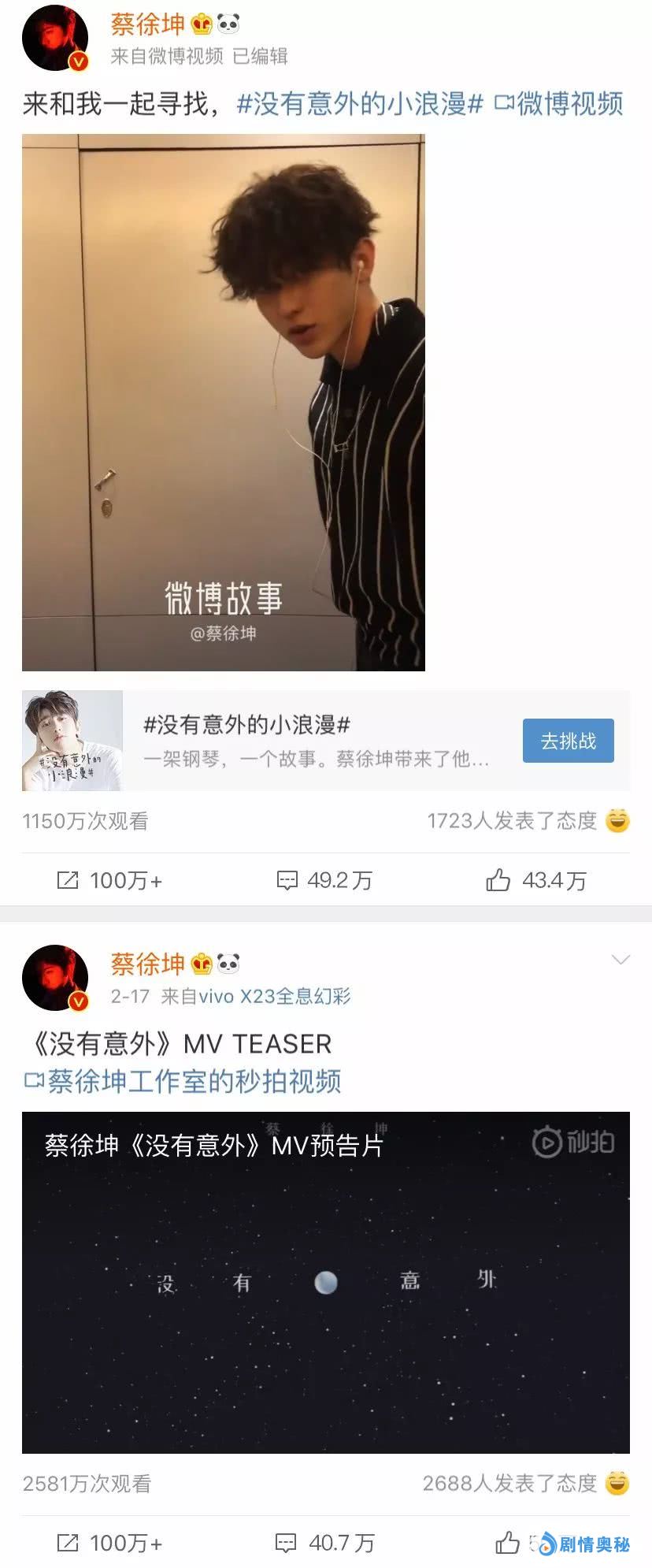 你们的峰值才一百万,我们蔡徐坤是每一条微博都一百万。