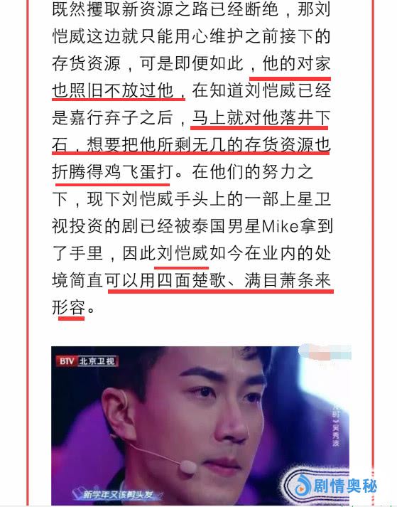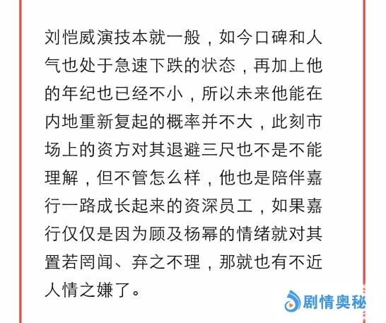 爆料者还指出,刘恺威这边用心维护之前的存货资源,但是他的对家依旧不放过他,得知刘恺威是嘉行弃子后,对家马上对他落井下石,把刘恺威存货资源折腾得鸡飞蛋打。看来刘恺威现状堪忧,四面楚歌,满目萧条啊!