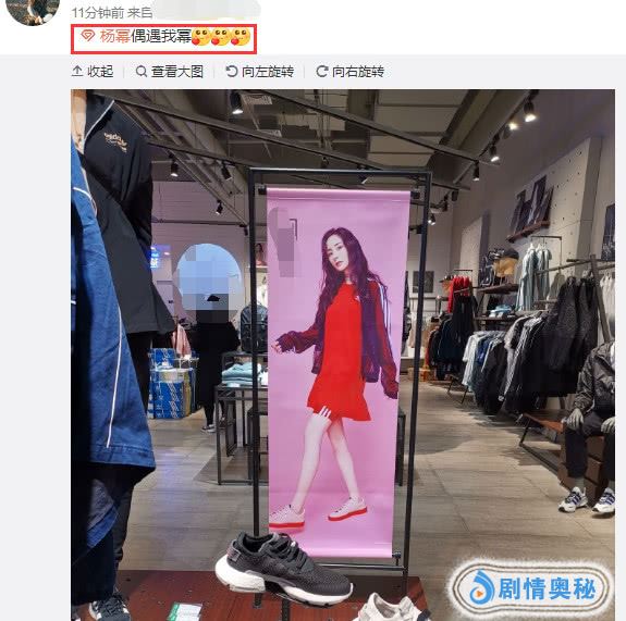 离婚后的杨幂人气依旧高涨,丝毫没有下降趋势,仍然备受广告商喜欢。网友还在某品牌店里偶遇杨幂宣传照片,靓丽迷人有气质。杨幂的资源就是丰富!