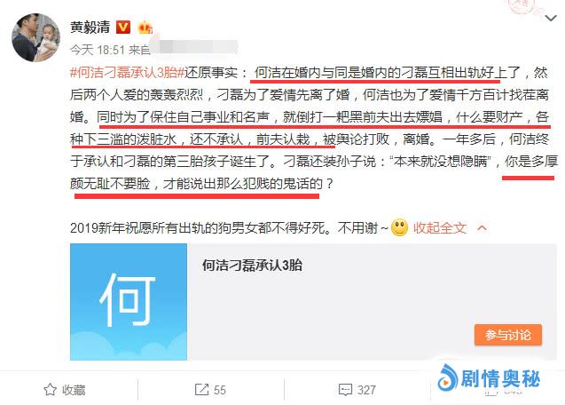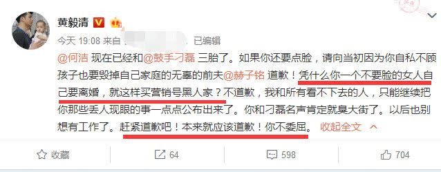 黄毅清在27号晚上连续发文,多次抨击何洁和刁磊!他要求何何洁前夫赫子铭道歉,还说:凭什么你一个不要脸的女人自己离婚买营销号黑人家?