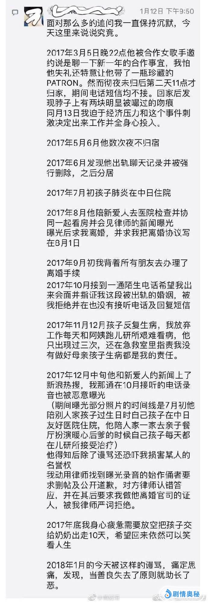 当晚黄毅清还发布了刁磊前妻是如何发现刁磊出轨的过程,再次刷新了我的三观。黄毅清爆料刁磊夜不归宿,出轨有吻痕被前妻发现。