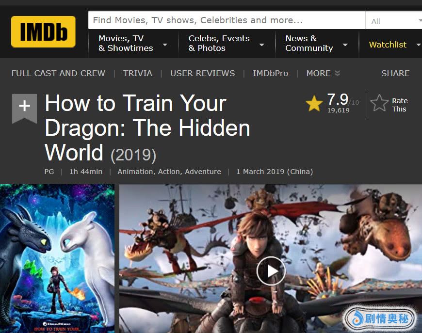 电影在IMDb平台拿下了7.9分,在豆瓣上拿下了7.8分。虽然没有系列首部那般惊艳,但是对于一部动画片而言,这个口碑还算可以。加上是《驯龙高手》的终结篇。电影中有很多致敬首部的细节。对于粉丝而言,光是情怀就让人令人激动