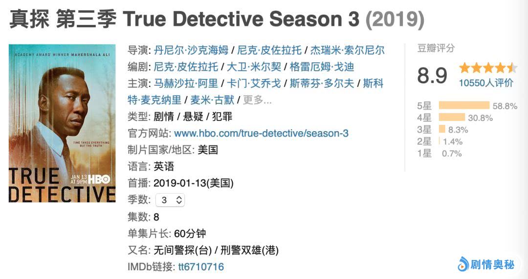 很遗憾的是,这部年度好剧的关注度还是远远不如前作。就像我们所看到的,第三季至今评价人数不足一万,而第一季已经有八万人评价了。