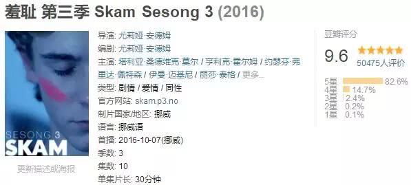 其中,《羞耻》第三季在豆瓣评分最佳,评分飙到了9.6分,五星好评高达82.6%,口碑逆天。