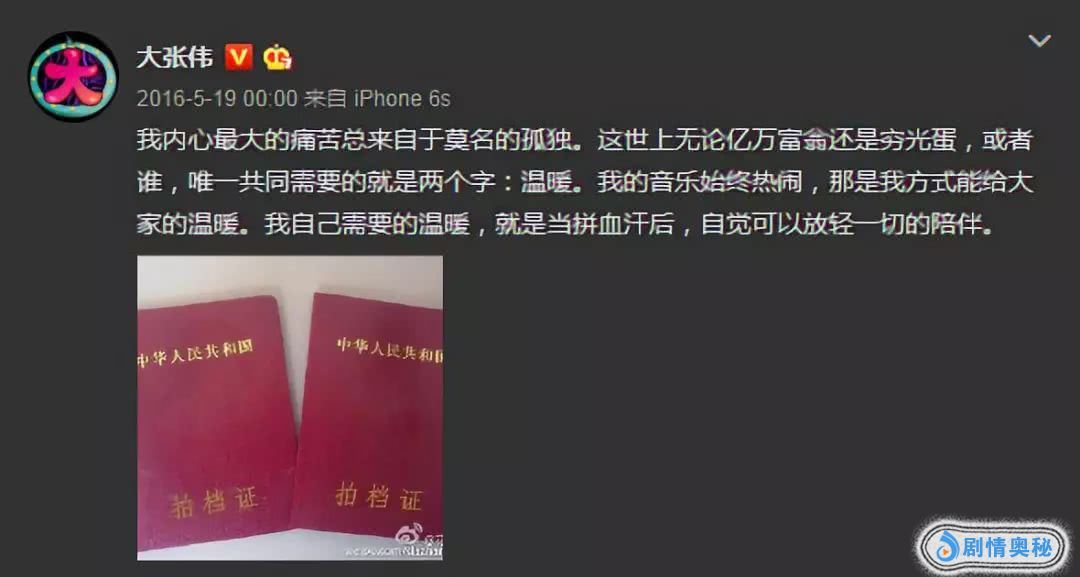 第二天,大张伟就在微博上,间接回复了结婚一事。