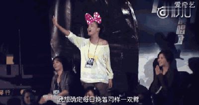 演唱会上,本来一脸严肃、不苟言笑,却因看到爱的人,忍不住露出笑容。