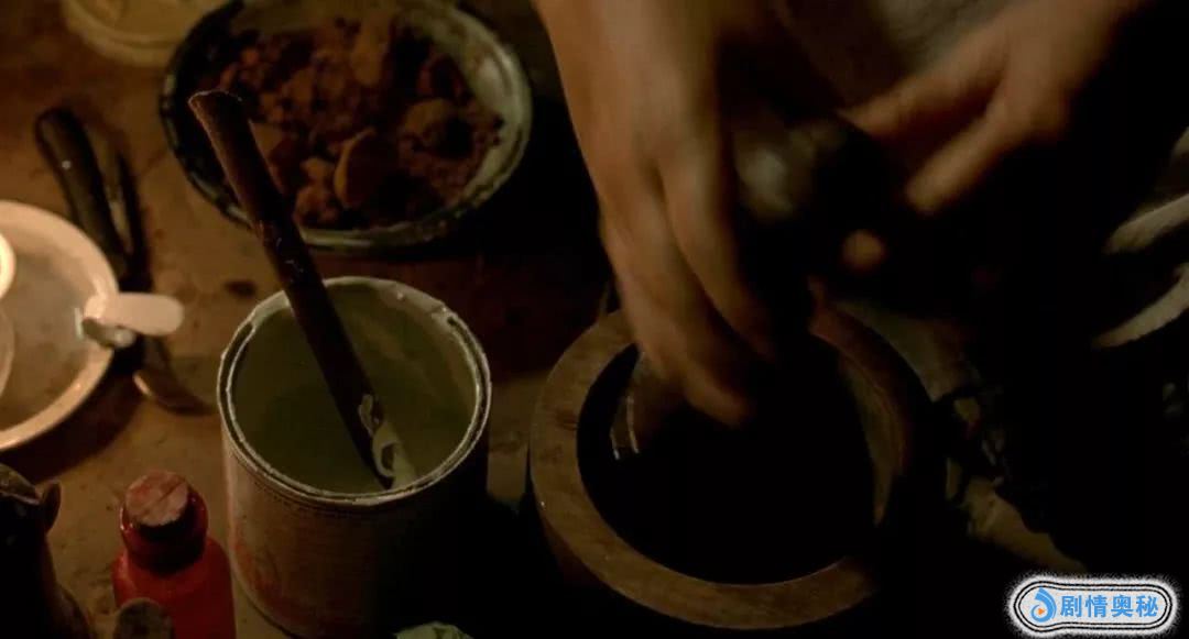 然后,她把这些东西擂在一起,和成天然的颜料。