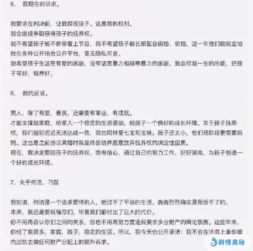 配文中显示,刁磊前妻说从2017年3月份,丈夫和合作的女歌手精彩约会。当晚就彻夜不归。之后5月份就有好几次夜不归宿的事情。8月份要求自己离婚,两个人9月份离婚的,但是刁磊要求离婚协议必须写8月1日签署的。