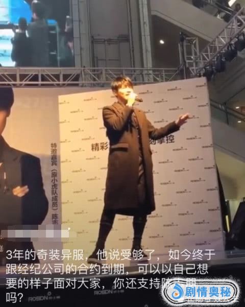 陈志朋在商演是透露,3年的奇装异服自己已经受够了!如今已经和经纪公司解约,可以以想要的样子来面对大家了!以及每次商演都唱同一首歌,也是因为商演都提要求唱知名度高的歌!