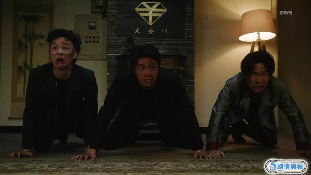 三个小伙子跪在地上求犬金组组长糟老头放过他们,糟老头想了想,给他们出了一道选择题,是选做偶像,还是被砍掉腿,或卖掉内脏,他们当然毫不犹豫选择了做偶像。