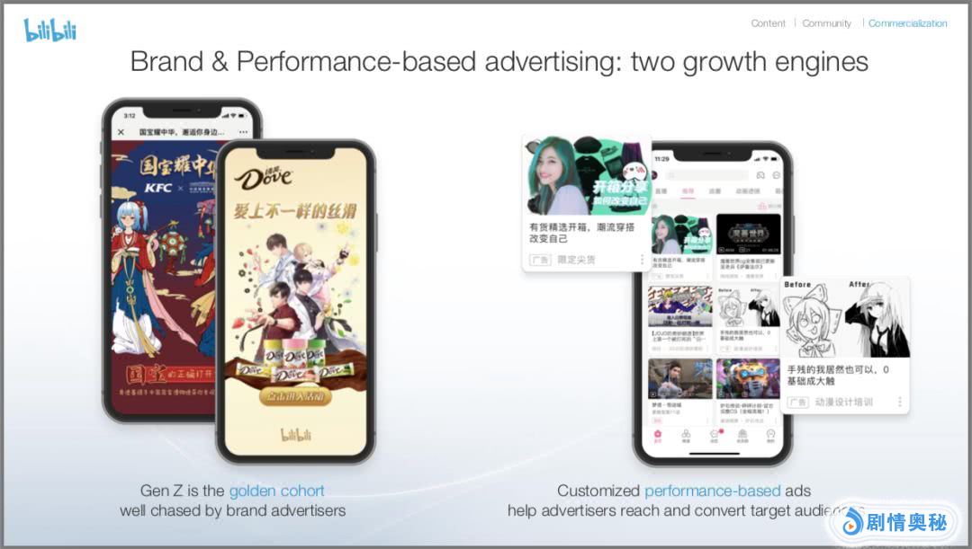 而B站的广告内容仍存在着巨大空间:据第三季度数据显示,B站的广告主的数量达到664家,同比增长超过1500%。而第三方数据显示,目前B站效果类广告的总量只占5%,远低于今日头条的20%。