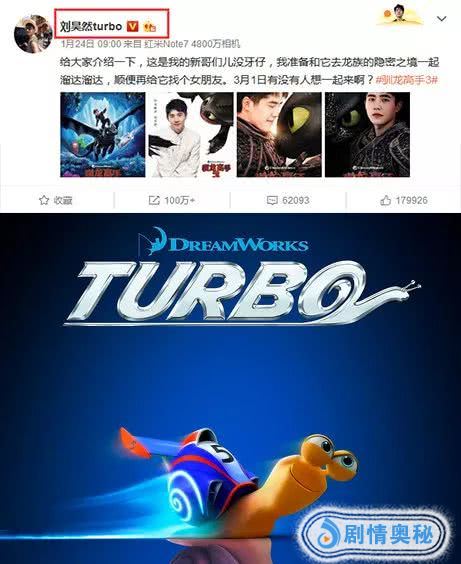 刘昊然是梦工场的死忠粉,微博名「刘昊然turbo」中的「turbo」,就出自梦工场动画《极速蜗牛》。