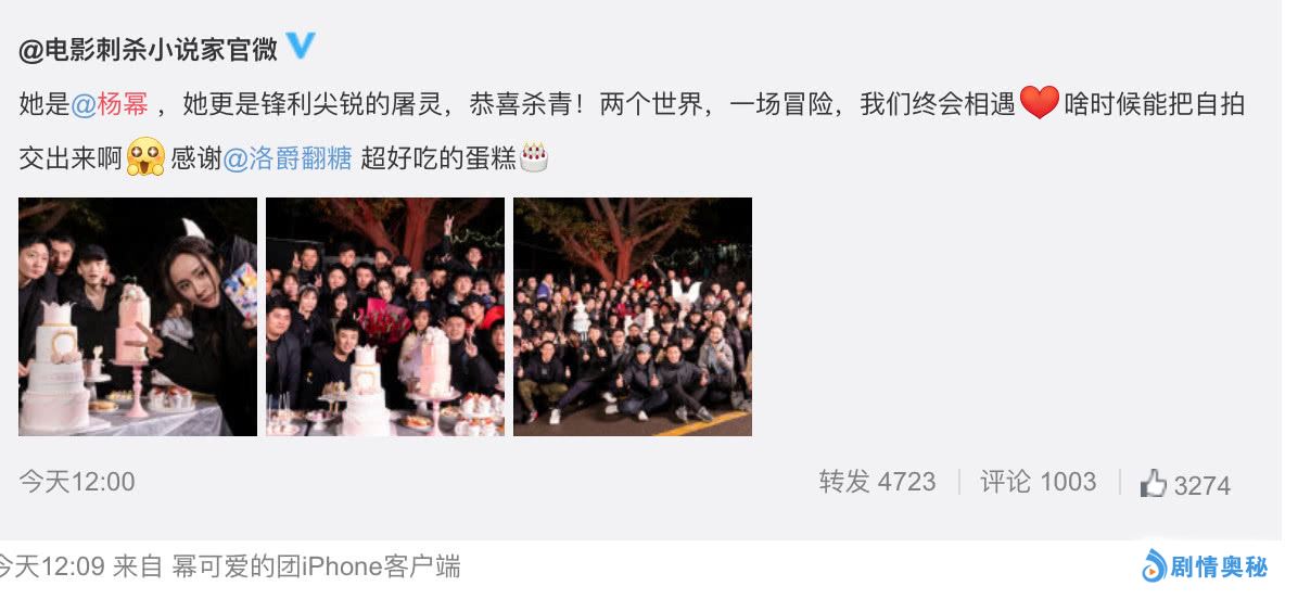 今日,《刺杀小说家》官方微博发布图文,宣布杨幂正式杀青。