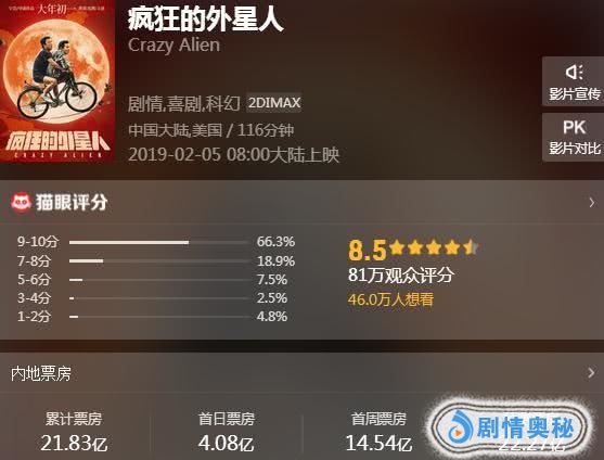 2019春节档可谓群星璀璨,集结了周星驰新片《新喜剧之王》,成龙《神探蒲松龄》,吴京《流浪地球》,沈腾《飞驰人生》等一众大片。而由宁浩执导,黄渤沈腾主演的《疯狂的外星人》被天价保底28亿,堪称头号种子选手。