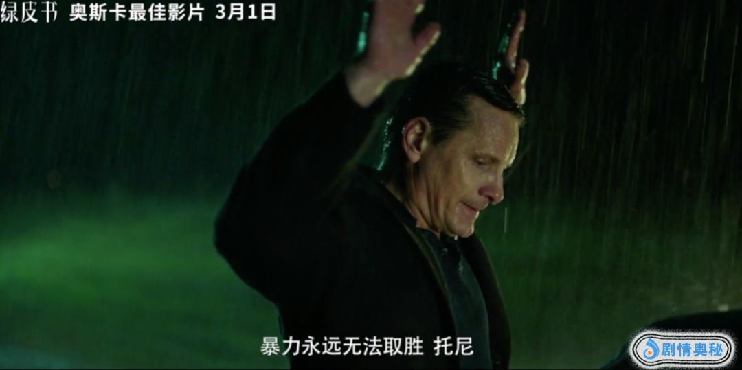 到最后,当唐·谢利在雨中爆发、说自己“不黑也不白”的时候,你才能突然意识到,他面临的是一个多么可怕的社会,完全已经将他吞噬了。