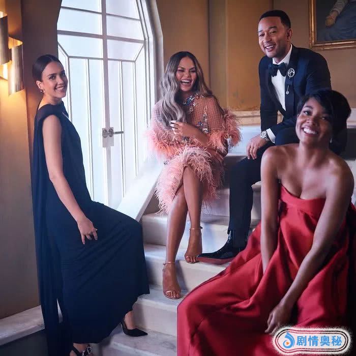 由左至右依次为:杰西卡·阿尔巴、克莉丝汀·泰根和约翰·传奇夫妇、加布里埃尔·尤尼恩
