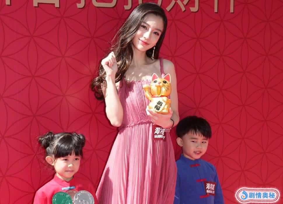 与小女孩小男孩站在一处的baby,左手托着招财猫,右手学招财猫握个小拳头举在身侧,再配上她娇俏甜美的表情,都有些词穷,找不到一个合适的词来形容她的美啦。