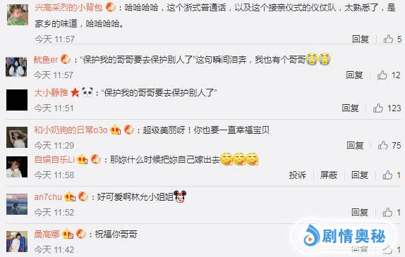 听到爱豆的感想,一些粉丝也表示很认同她的看法。“我的哥哥要去保护别人这句瞬间泪奔,我也有个哥哥。”即便不是同一个世界,同一种哥哥的画风。但毕竟是从小长大的亲人,年龄还没差多少。一想到以后曾经的独宠或者大闹要变成认真生活,落差感一定是有的。