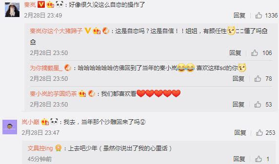 当然,要是自恋操作里全部是这样的盛世美颜。粉丝们一定希望每一天都可以看到。因为自恋什么根本不存在。在大家看来明明就是自信的表现。不然也不会被放出来。女神画风看得多了,偶尔换种style,比如沙雕向也是不错的选择。不过要是秦小岚同学能够两者兼得的话,那就再好不过了。尤其是精神食量比较缺乏的时候!