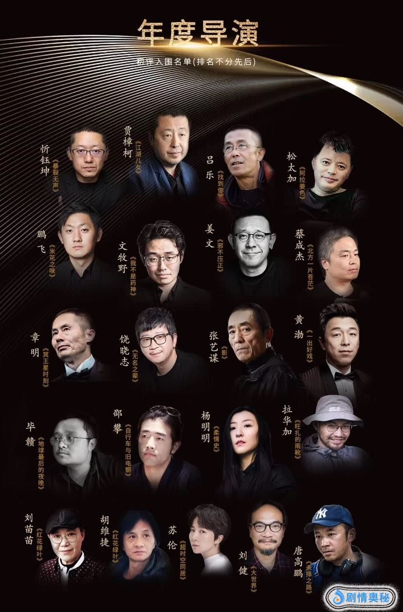 年度导演初选名单,张艺谋、姜文、贾樟柯几位重量级导演入围。黄渤凭借自己的导演处女作《一出好戏》也成功入围。