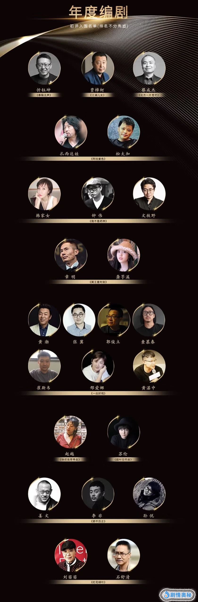 此外还有年度编剧评选,《我不是药神》、《一出好戏》、《江湖儿女》等作品的编剧们将竞争这一奖项。