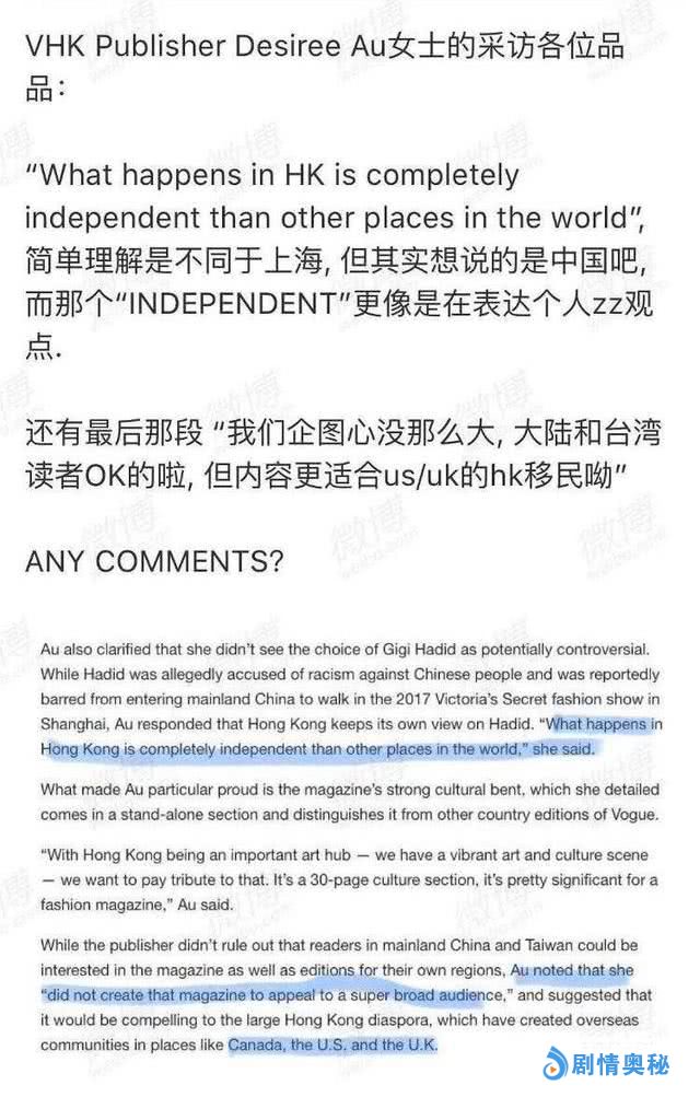 网友们纷纷表示:“让一个歧视亚洲人的人来当封面?” 并对Vogue Hongkong负责人产生质疑:“不把自己当华人、亚洲人,你HK再高级也还是亚洲一个地区。”