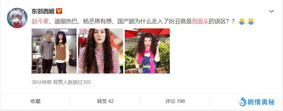 在说起赵今麦的泡面卷发的同时,也有不少人想起《漂亮的李慧珍》中由迪丽热巴饰演的李慧珍也是以一头卷发的方式“扮丑”,类似的情况还出现在《不良校花》,这部电视剧中杨丞琳饰演拥有难以打理的自然卷女主蒋小花,后期的由丑变美也仅仅是强行扭转个人审美,将卷发拉直。