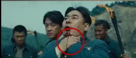 《怒晴湘西》中,陈玉楼为救弟兄们假意给马师长下跪,乘马师长不注意的时候,陈玉楼抹了马师长的脖子。当时,马师长痛苦的捂住流血的伤口,血已经染了马师长的血。等镜头一拉远,马师长倒下,手上的血消失了。这就是一个明显的穿帮镜头。