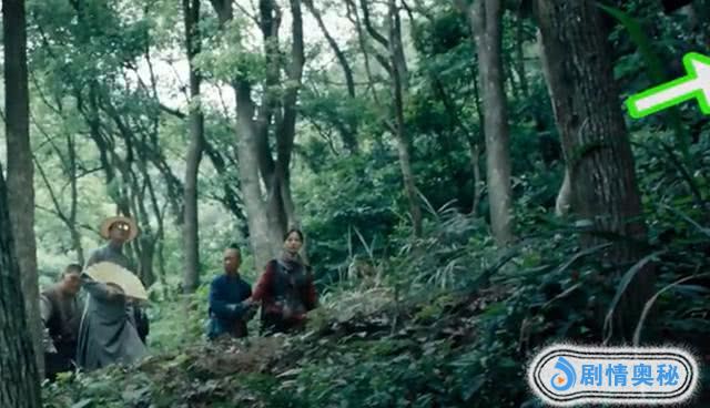 陈玉楼红姑娘等人进入瓶山,他们一路沿着瓶山的小路走,总把头还摇着扇子相当逍遥。这时,树林中出现了穿短袖的工作人员。这位小伙伴或许是灯光师,也或许是摄像师。