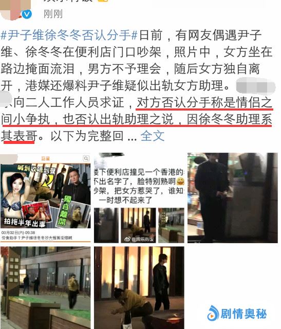 因为《余罪》这部戏,大嫂徐冬冬一炮而红,其个人感情也备受关注。3月2号,有媒体报道说徐冬冬拍拖半年的男友出事了,文章指出男友尹子维偷食女助理,尹子维和徐冬冬两个人当街吵架。
