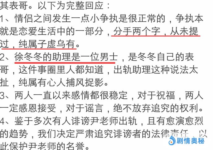 第二点:徐冬冬的助理是一位男士,是冬冬自己的表哥,这件事圈里人都知道,出轨助理这种说法太扯,纯属有心人捕风捉影。