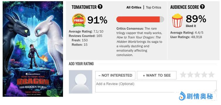 烂番茄也有91%的新鲜度,观众评分89%的新鲜度,整体评价也是很不错的。