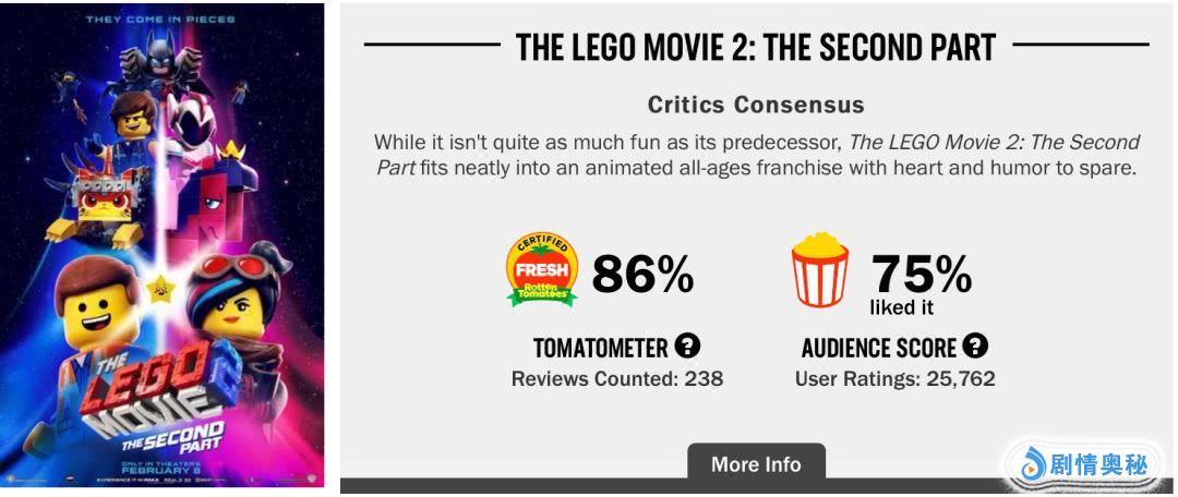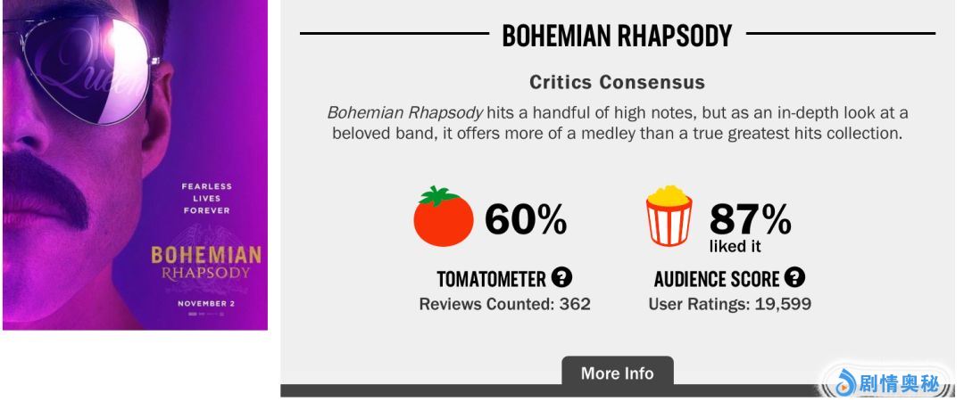 就好像这部电影的烂番茄评分,也是观众好评度远高于影评人新鲜度。93%的好评度,也是很高了。