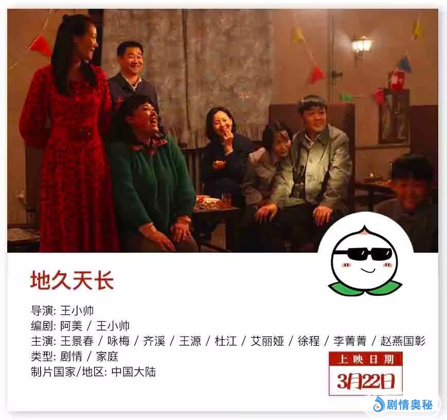 王小帅导演的新作,刚刚让男女主角双双在柏林电影节斩获影帝影后的《地久天长》,三月底也要在国内上映了,虽然好像官方尚未正式公布是3月22日上映,但是,种种消息都称本片将在3.22上映,那就先放这吧。