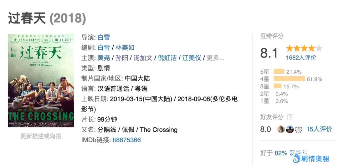 另外,本月据说还有望上映这部电影,《看不见的客人》导演自编自导的新作《海市蜃楼》。而我们都知道,《看不见的客人》当年是有多么受欢迎了,五十多万人评价,还高达8.7分。
