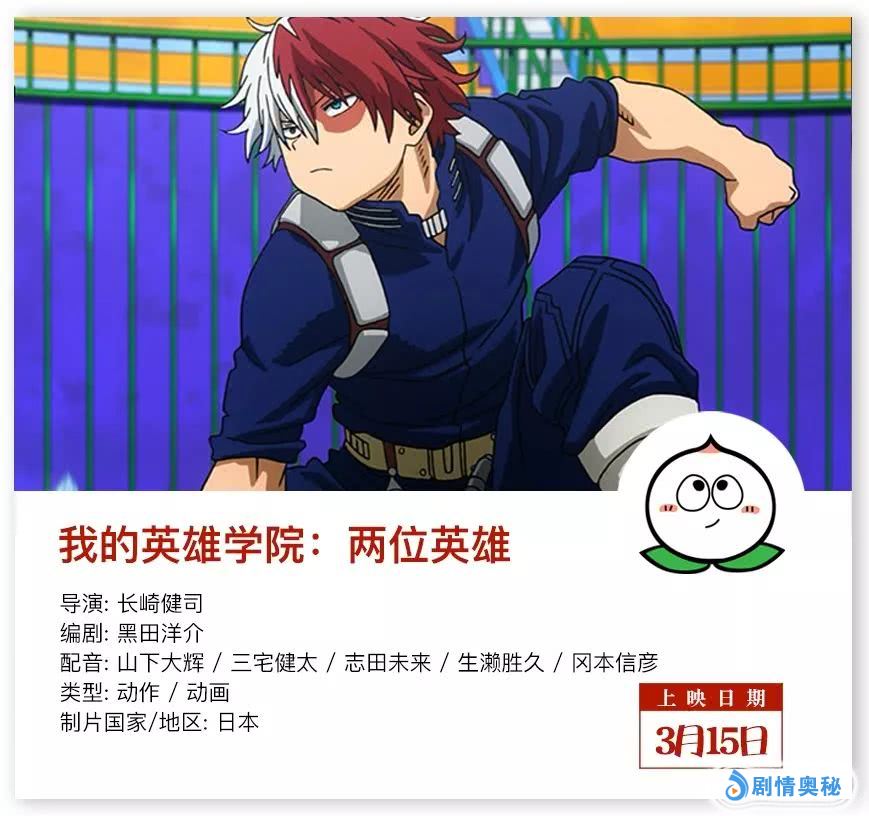 同样由《周刊少年JUMP》推出的,相当火爆的少年漫《我的英雄学院》,剧场版这个月也会在国内上映。
