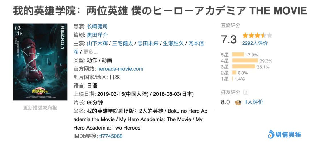 剧场版则是去年在日本上映,评价稍逊,但也有7.3分。