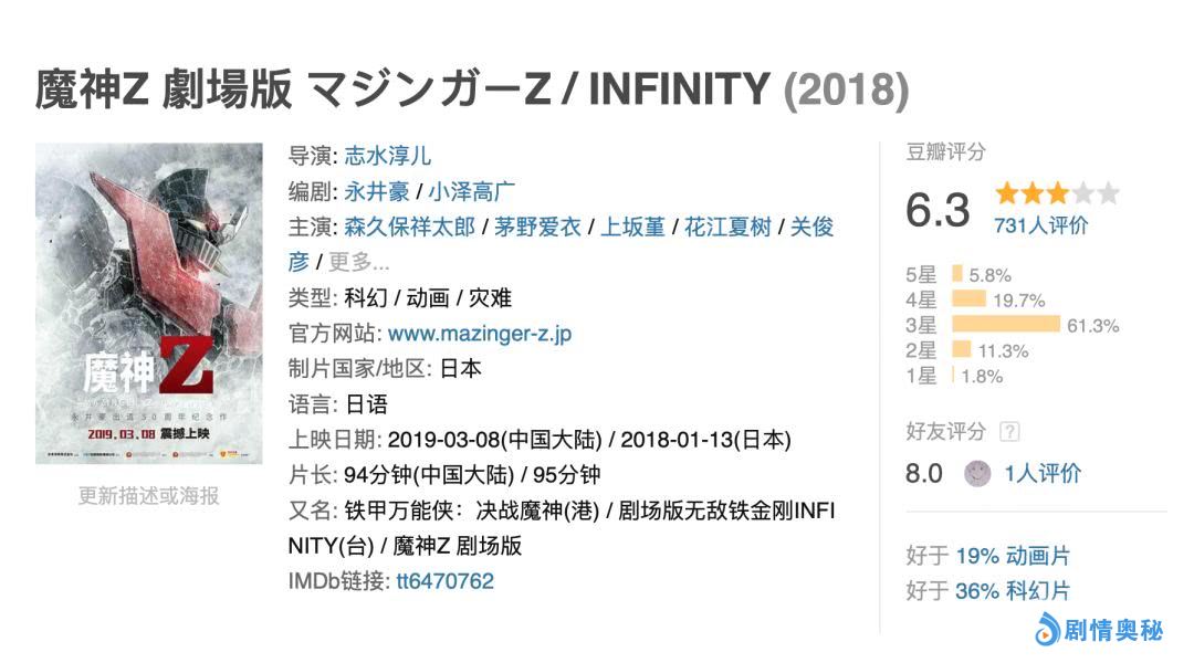 影片目前在豆瓣6.3分,倒不是特别高,有机甲情怀的朋友们可以了解一下。