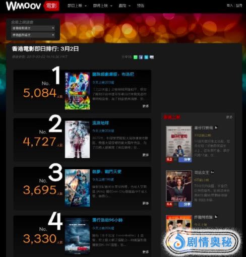 不仅在国内票房表现优秀,在北美、香港等地上映时也收获了不少好评。根据数据显示,《流浪地球》在香港电影即日排行版第二位,反响热烈。