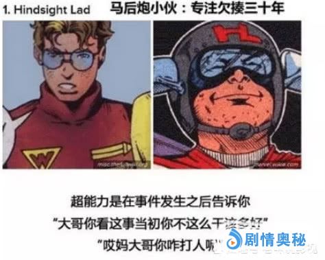 然后这位就是马后炮小子了,这位的超能力简直逆天的存在啊,就是每一件事情发生之后告诉你,当初你本就不该这样做的,然后就不会发生这个结果。