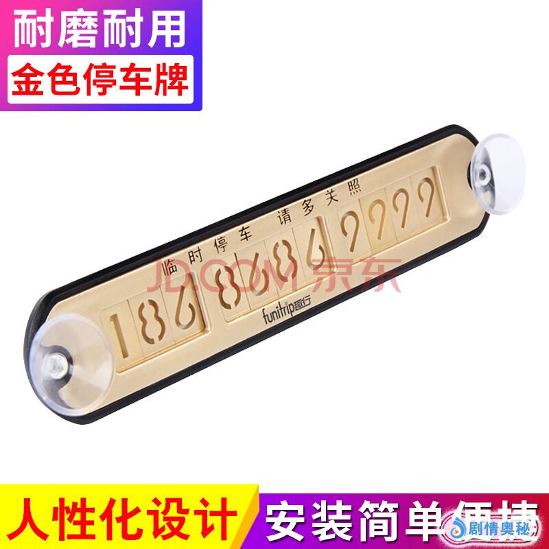 趣行 汽车停车电话牌 双吸盘式挪车号码牌 金色 路边临时停车挪车号码卡