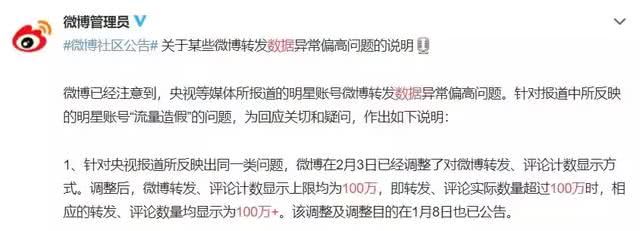 就在央视开炮的第二天,微博官方做出回应:将微博转发数字限制成100万+。