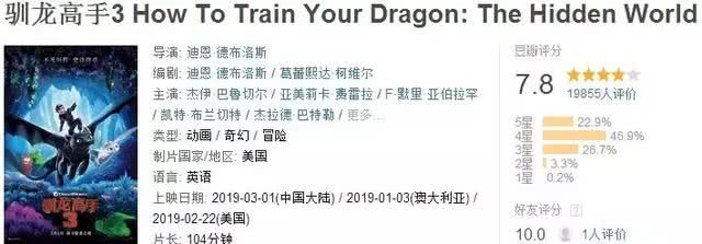 即便经过近十年的洗礼,《驯龙高手》依然在豆瓣保持着8分左右的高分,